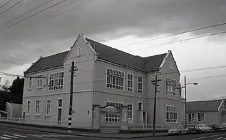 The original High Street School building which opened on Tuesday, 15 February 1887, was a very large and imposing two story wooden weatherboard design with tall 5 metre studs and a prominent bell tower – this building stood for 95 years until 1982 when it was demolished, and replaced by the current school buildings. There was no separate intermediate school for some years and the combined primary and intermediate roll was large, numbering around 500 for example in 1924. The janitor and his family lived in a cottage on the grounds and in addition to janitorial duties ran a small shop selling stationery and sweets.[4]