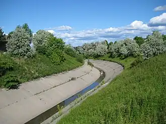 Due to development in Scarborough, which has substantially increased the amount of water that historically travelled through the river, there are a number of artificial diversions (use of control channels) to decrease erosion and guide the river past obstacles. For example, there are a large number of areas where the river is lined with rock cages. There are small dams to even out the flow in areas where upstream storage reservoirs are possible, increasing its depth. The river travels through culverts under some major streets. In addition, many of the city's storm sewers drain into the river. The valley of Highland Creek contains a number of interconnected parks which have a system of paved bike and walking paths. As a result of these numerous channel modification projects, mostly implemented in the 1960s and 1970s, much of the creek does not follow its natural path. This is in contrast to the nearby Rouge River, which has fewer in-stream barriers and extensive riparian and floodplain vegetation, and where a wider variety of wildlife, including some climax forest species, can be found.