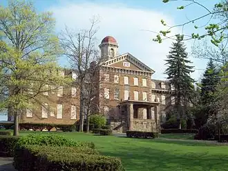 Designed by noted Philadelphia architect Samuel Sloan (1815-1884), Highland Hall was built sometime around 1865. It is now a four-story, L-shaped, stone building that features a mansard roof, which was a characteristic of the Second Empire style.[2] Highland Hall was added to the National Register of Historic Places in 1978.[1]