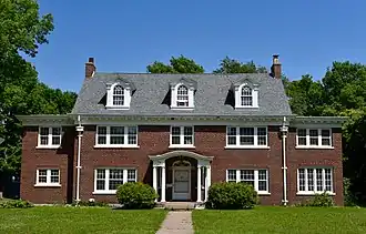 The Highland Historic District is a nationally recognized historic district located in Waterloo, Iowa, United States. It was listed on the National Register of Historic Places in 1984.[1] Because of industrial growth the city's population doubled between 1890 and 1900, and then again between 1900 and 1910.[2] The housing development named the Highlands was developed during this period of economic growth. John Steely, a real estate broker, and Lewis Lichty, an attorney who owned the Waterloo Canning Company, bought the property known as sandhill in 1901, and opened an office for the Highland Land Company in the Century Building in 1905. The historic district is all residential buildings.[2] The oldest house predates the development having been built in 1900. Otherwise construction began in the center of the district in 1908 and moved outward. By 1942 all but 15 houses were built. They are all frame construction with exteriors composed of wood, stucco, brick and stone. Styles popular in the district include Colonial Revival, Tudor Revival and American Craftsman. Waterloo architect Mortimer B. Cleveland is responsible for designing at least 39 of the houses here. Chicago landscape architect Howard Evarts Weed designed the Square and boulevard plantings. This was Waterloo's first suburban residential development.[2] It became the enclave for the city's industrial and professional elite in the first half of the 20th century.