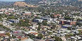 With the completion of Arroyo Seco Parkway in 1940, Highland Park began to experience white flight, losing residents to the Mid-Wilshire district and newer neighborhoods in Temple City and in the San Fernando Valley.[7] By the mid-1960s, it was becoming a largely Latino district. Mexican immigrants and their American-born children began owning and renting in Highland Park, with its schools and parks becoming places where residents debated over how to fight discrimination and advance civil rights.[8]