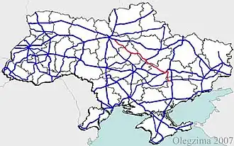 - ^ "В Україні сформовано нові автомобільні коридори". Ukravtodor. Archived from the original on 2021-04-11. Retrieved 2022-03-17.