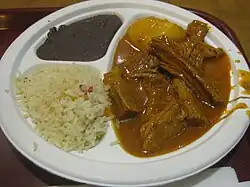 Hilachas is a dish originating in Guatemalan cuisine that is similar to ropa vieja.[1] It generally consists of boiled, shredded beef served with tomato sauce and tomatillo, potatoes, carrots and Guajillo chiles.[2] The name translates to "rags" and is very common throughout Central America.[3]