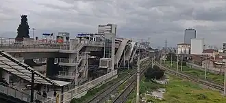 Hilal is an elevated station on the M1 Line of the İzmir Metro in Konak. Located above the Turkish State Railways' Hilal junction, it is one of the ten original stations of the metro system. Connection to İZBAN commuter trains are available at Hilal railway station.[1] Since Hilal is located in the middle of a railway junction, no direct connections to ESHOT city bus service is available. The closest bus stop is located on 1396th Street about 460 m (1,510 ft) northwest of the station.