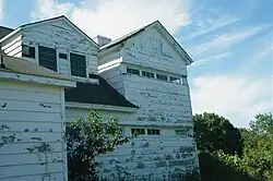 After purchasing the house, the Lindleys cleaned up the place, adding a couple of bedrooms and a bathroom in unfinished attic space on the second floor and replacing the iron rungs from the first floor to the second with a staircase. The house remained close to its original and distinctive Army design, however, retaining the narrow slot windows, or mullioned observation slots, that had been installed in its three instrument rooms for spotting enemy activity.[19]