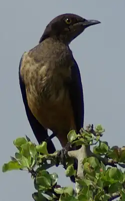 Hildebrandt's starling (Lamprotornis hildebrandti) is a species of starling in the family Sturnidae. It forms a superspecies with and has previously been included in the same species as Shelley's starling, a migratory species ranging from Ethiopia and Somalia to Kenya. Both of these species have also been combined into a superspecies with the chestnut-bellied starling of West Africa.[2] It was originally placed in the now defunct genus Notauges.[3] The species is named for Johann Maria Hildebrandt, a German collector who was the first European to obtain specimens.[4]