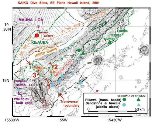 - ^ Hawaiian Landslides Archived 2009-05-27 at the Wayback Machine —Slope failure on Kilauea's submarine south flank (Subsection)