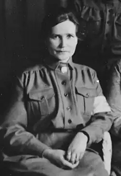 Riipinen was chosen to be the head of the local women's auxiliary Lotta Svärd chapter in 1920. She was elected to the Lotta Svärd central board of directors in 1923 and quickly became a central figure and a well-liked speaker in the organisation. However, she declined inquiries to become the chairperson for the national level.[7] She also became the editor for the Lotta Svärd newspaper. Riipinen later became known as a person who often had dissenting opinions about decisions made in the board of directors. In particular, she criticized leader Fanni Luukkonen for not participating in IKL meetings but participating in women's day events where left-wing people were invited as well. Riipinen was not chosen to the board of directors again and was also dismissed from her position as the editor of the Lotta Svärd newspaper in 1936.[8] Her ties with the organisation were only restored during the wartime.[9]