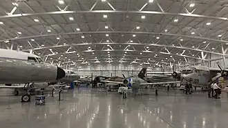 The museum completed the conversion of a C-130 fuselage into a classroom in 2019.[20][21][22] The museum embarked on expansion in 2021, building a new restoration facility and receiving $12 million from the state for the construction of a third hangar.[23][24] At the same time, it was forced to announce plans to demolish its World War II barracks as it was too deteriorated to repair.[25] Ground was broken for the 80,000 sq ft (7,400 m2) building and 7,000 sq ft (650 m2) connector in October 2022.[26][27] The museum began moving aircraft into the hangar in November 2023, which was dedicated as the L.S. Skaggs Gallery the following May.[28][29]