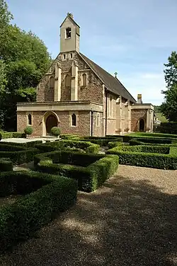 Dorothy died in 1954 and was succeeded by her son John Lionel Trafford who died unmarried in 1978. After his death the tenant farmers of the 2,000 acre estate were given the opportunity to purchase their farms. As a result of the division of the estate, Hill Court was reduced to its current size of approximately 40ha. In the early 1980s Hill Court was sold to Christopher Rowley who turned part of the estate into a garden centre. In 1994 the property was sold to Rehau Ltd, a private German Industrial Group[4] and was completely renovated. In 1997 Rehau acquired the Church of the Paraclete to the east of the house. The Grade II listed[5] closed church was built in 1905–06 to designs by George Frederick Bodley in memory of Major Lionel James Trafford.[6]
