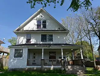 The Hill McClelland Bell House is a historic building located in Des Moines, Iowa, United States. Built 1902, the 2½-story structure features a rectangular plan, a gable front, and a wrap-around porch. Decorative elements include wood shingles in the gable end, and some of the windows have a diamond mullion pattern. The house's significance is derived from its association with Hill McClelland Bell, president of Drake University from 1902 to 1918.[2] This was a period of dramatic growth for the college. It was during his tenure that the institution was accredited with the North Central Association of Secondary Schools and Colleges, the establishment of a faculty pension, an increase in the school's endowment, a decrease in its debts, eminent professors joined the faculty, and several colleges were reorganized. Enrollment increased during this period of time, and five significant buildings were built on campus. The house was listed on the National Register of Historic Places in 1988.[1]