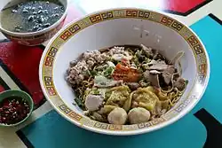 Hill Street Tai Hwa Pork Noodle is a street food stall, one of 6,000 such stalls within Singapore.[1] It was founded in the 1930s by Tang Joon Teo, but after he fell ill during the 1960s, his second son Chay Seng took over its management.[2] When Tang Joon Teo died in 1995, he left the stall to his three sons. Tang Chay Seng continues to run the stall, which was originally located at Hill Street, it moved in the 1990s to Marina Square and again in 2004 to Crawford Lane.[3]