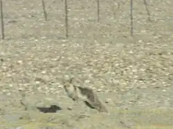 The hill fox[1] (Vulpes vulpes montana),[2] also known as the hill red fox,[1] or the Himalayan red fox,[3] is a subspecies of the red fox that is native to parts of the Himalayan Mountain Range and Karakoram Mountain Range. It has two noticeable populations: one being in northeastern India, far southern Nepal, and far northern Bangladesh. The other is in portions of far northwestern India, and northeastern Pakistan. Populations may be present in way far southwestern China, and in other areas of the Himalayas.[4] Its natural range is made up of rocky terrain, low grasslands, and tundra within a temperate climate.[5] The hill fox is differentiated from the nominate subspecies by having a smaller sized body, smaller skull, teeth, and by having rough or coarse hair. Its feet hair are mixed with softer, woolly hair.[6] It is occasionally known to build dens near human-urbanized areas.[7] Additionally, researchers found these foxes in Shigar valley, Karakorum Range, Pakistan and studied their living habits and their locations of dens. Their studies showed that in their resting state 83.33% of the foxes have a den in a grass/bare habitat.” [7] Many Vulpes Vulpes Montanas are high altitude animals and they have many mechanism adaptations due to their environment. Studies have shown that “many high-altitude animals reduced O2 demand by suppressing total metabolism to compensate for a reduced cellular O2 supply as a response to hypoxia.” [8] There are many studies that take account of their genetic information to understand their evolution and adaptation in high-altitude habitats. One study used, “blood samples obtained from a wild female red fox captured from Lhasa in Tibet, China. Qinghai--Tibet Plateau is the highest plateau in the world with an average elevation above 3500 m.” [9] In this study they analyzed the sequences of their genes and found a gene that corresponds to their ability to adapt in their environments.
