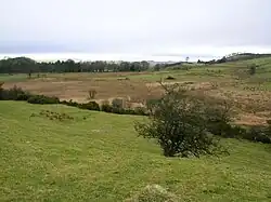 The small Loch Brand was once held by the monastery of Kilwinning Abbey and it is recorded that in 1482 the monks had to take legal action against the Montgomeries of Giffin Castle and a James Ker, who were accused of dangerous destruction and down-casting of the fosses and dikes of the loch called Loch Brand.[23] Although shown on a map of 1654 it no longer appears on Roy's map of circa 1747. Despite this cartographic evidence it is said to have been finally drained in 1780 at which time oak and elm stakes were uncovered which may have been evidence of a crannog once existing here.[22] The new lands were used for agriculture and are discernible today (2010) as poorly drained wetlands.