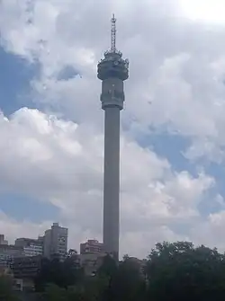 The Hillbrow Tower is one of two iconic towers that are often used to identify the Johannesburg skyline. The second tower, the Sentech Tower (old Albert Hertzog Tower), is used for television and radio transmissions.[1][2][3][4]