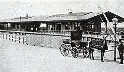 The first railway station in the town was opened in 1891, closed in 1898 and torn down in 1900. A second railway station was opened on a different location in 1898, when the first was closed. It was designed by the architect D.A.N. Margadant. The freight tracks on the railway station were used to transport flowers from the nearby fields to i.a. the flower auction in Aalsmeer. During World War II, these tracks were used by the Germans, making it a prominent target for allied bombings. The passenger railway station was closed as a result of this on 17 September 1944. The freight tracks remained in use until the 1980s.