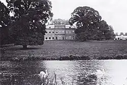 After the first house burnt down, the present structure was built in 1844, in a classical Victorian style.[4] In 1892, an area of the estate south of the house was established as Hillingdon Golf Club, founded by Charles Newton who lived at Hillingdon House, and Charles Stevens, a partner of a local timber company.[8] The estate of Frederick Cox, Richard Henry Cox's grandson, placed the house on the market in 1914, describing it as "a brick and stone building, partly stuccoed, with extensive outbuildings and ornamental gardens."[5] The house and gardens, together with the surrounding parkland and artificial lake created by damming a section of the River Pinn, amounted to more 200 acres (81 ha).[7]