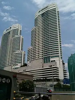 Hilton Kuala Lumpur is a luxury hotel, located in Kuala Lumpur, Malaysia. It is part of the Hilton Hotels & Resorts hotel chain. The hotel is situated in the Kuala Lumpur Sentral area. At a height of 154 meters with 35 floors, the hotel is the 43rd tallest building in Malaysia.[1][2] It is situated next to another hotel of the French chain Le Meridien, whose building's appearance is identical.
