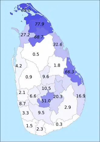 - ^ "Census of Population and Housing of Sri Lanka, 2012 - Table A4: Population by district, religion and sex" (PDF). Department of Census & Statistics, Sri Lanka. Archived (PDF) from the original on 29 December 2014.