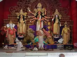 Hinduism is the largest religious tradition in the Indian state of West Bengal with approximately 70.54% of the population identifying themselves as Hindus (as of 2011).[1] The Hindus in West Bengal mostly belong to the Shakta (the Kalikula tradition), minority to Vaishnavite and a small community belong to Shaivite and other denominations.[2] The vast majority of Hindus in West Bengal are Bengali Hindus numbering around 55 million and comprising 60.2% of the state population of 91.35 million (2011)[3][4] but a notable section of non-Bengali Hindus also exist, particularly among Marwaris, Biharis, Odias, Gurkhas, Sindhis, Gujaratis and various tribal communities such as Koch, Santals, Munda, Mech people and particularly Adivadis numbering around 9.4 million comprising rest 10.3% of the state population.[4][5][6]