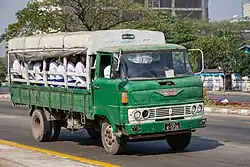 The original engine produced 90 PS (66 kW). Along with the 1967 facelift came ten extra horsepower, although the six-cylinder DM100 unit still displaced 4,313 cc (263.2 cu in).[2] In April 1971 the wheelbases were changed across the range, meaning new model numbers: KM310 (regular), KM330 (short), and KM350 (long).[3] In April 1978 the engine was switched to the new DQ100 and various safety improvements (high-backed seats, larger rear view mirrors) were introduced. The new DQ100 engine displaced 4,507 cc (275.0 cu in) and output increased to 110 PS (81 kW). The line was now designated KM500, with the short wheelbase (usually sold as a dump truck) called the KM520 and the long wheelbase model called the KM540.[4]