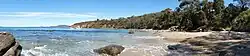 Hinsby Beach is a beach along the River Derwent in the Hobart suburb of Taroona, Australia. The south facing beach looks directly out to Storm Bay and the Tasman Sea, with views of the Derwent estuary, the Alum Cliffs, Taroona Shot Tower, the City of Clarence on the eastern shore and Opossum Bay, South Arm. Hinsby Beach is situated between the Alum Cliffs and Taroona Beach.[2] A naturally secluded section of the beach, beyond the rocky south-western outcrop is a zoned naturist beach.[3]