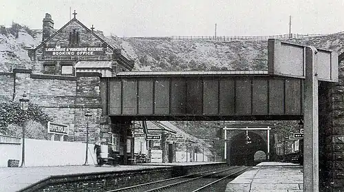 Hipperholme railway station was opened by the Lancashire and Yorkshire Railway on 17 August 1850.[2] The station closed to passengers on 8 June 1953[3] and to goods in 1966. A campaign is under way to re-open the closed station or to have a new one built in the area to alleviate congestion in the Hipperholme area.[4] In August 2018, as part of a call for new stations on the Caldervale Line it was proposed that Hipperholme could reopen.[5]
