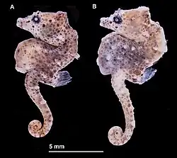 - ^ Short, Graham; Claassens, Louw; Smith, Richard; Brauwer, Maarten; Hamilton, Healy; Stat, Michael; Harasti, David (19 May 2020). "Hippocampus nalu, a new species of pygmy seahorse from South Africa, and the first record of a pygmy seahorse from the Indian Ocean (Teleostei, Syngnathidae)". ZooKeys (934): 156. Bibcode:2020ZooK..934..141S. doi:10.3897/zookeys.934.50924. PMC 7253503. PMID 32508498.