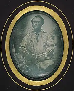 ![]() Photograph by Louis Daguerre identified as Hippolyte Sebron.[1] | |