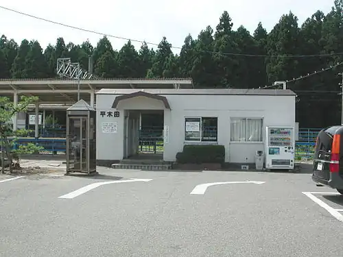 Hirakida Station (平木田駅, Hirakida-eki) is a railway station located in the city of Tainai, Niigata Prefecture, Japan.[1] It is served by the Uetsu Main Line.[2] The station is 44.7 kilometers from the terminus of the line at Niitsu.