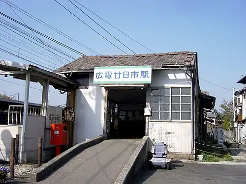 Hiroden-hatsukaichi is a Hiroden station on Hiroden Miyajima Line, located in Hatsukaichi, Hatsukaichi, Hiroshima.