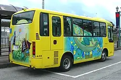 His work has been exhibited several times in art museums in Japan, among them solo exhibitions at Hachiōji Yume Art Museum in Tokyo in 2007,[3] Sumida Hokusai Museum in 2018,[2] Yamagata Museum of Art in his home province in 2022[8] and Hachioji Yume Art Museum in 2023.[9] A public transport bus in his hometown of Yonezawa features characters from Atagoul.