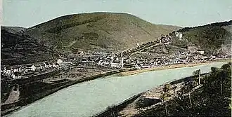 Steam navigation on the Neckar was introduced in 1841 and meant a moderate economic upturn. Horse-drawn barges finally disappeared from the river in 1878, when a seventy-mile-long chain was put on the river bed on which tugs could pull themselves upstream or downstream. A lot of bargemen became redundant and lost their jobs. The Neckar Valley Railway started to operate, connecting Hirschhorn with Heidelberg and Mosbach. The railway station was built outside the historical precinct of the town in the direction of Neckarsteinach, thus providing an incentive for further expansion of the town in this direction. On the Neckar, a weir with a lock and a bridge was completed in 1933. A second lock was added in 1959. The bridge linked Hirschhorn and Ersheim, which had been practically deserted centuries before; so as early as in the 1930s a few houses and a new school for Hirschhorn (which was enlarged in 1970) were built on the left bank.
