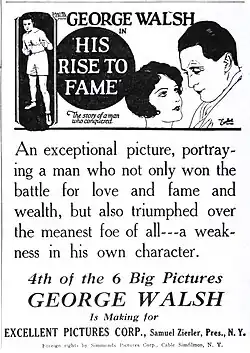 His Rise to Fame is a 1927 American silent drama film directed by Bernard McEveety and starring George Walsh, Peggy Shaw, and Bradley Barker.[1]