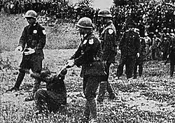 In February 1946, Tani was arrested on orders of the American occupation authorities and charged with Class B and Class C war crimes. At the request of the Chinese government, he was extradited to China to stand trial at the Nanjing War Crimes Tribunal in August 1946.[4] Tani denied all charges at the trial, stating that his troops kept discipline, and the area of Nanjing assigned to his division had been largely evacuated due to the ferocity of the battle. Furthermore, none of the witnesses against him could identify his unit numbers, and indeed the evidence presented to the court pertained to troops and areas of the city under General Kesago Nakajima and General Shigeharu Suematsu. However, the presiding judge refused Tani's request to call on his chief of staff and surviving junior officers as witnesses, and stated that since the various atrocities which occurred in Nanjing were testified to by hundreds of surviving witness as well as several foreigners from Nanking Safety Zone, he was unwilling and unable to divide responsibility. According to the ruling of the court, all of the Japanese commanders involved in the Battle of Nanjing had an equally shared responsibility for atrocities which occurred during the Rape of Nanjing, and this included Generals Iwane Matsui, Heisuke Yanagawa and Sadao Ushijima as well as Nakajima, Suematsu and Tani. He was consequently sentenced to death as a BC-class war criminal. On 26 April 1947 he was escorted to his execution spot at Mount Yuhuatai and publicly executed by shooting. The crowds of Chinese civilians who witnessed the execution were cursing at him for the atrocities he committed.[4][5]
