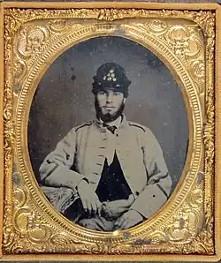- Colonel Carlos Alvarez de la Mesa (1828–1872) – Alvarez de la Mesa, a resident of Worcester, Mass., was a Spanish national who fought at Gettysburg for the Union Army in the Spanish Company of the "Garibaldi Guard" of the 39th New York State Volunteers.[14] He received a stomach contusion at Gettysburg and was medically discharged on September 30, 1863, for intermittent fever and chronic ankle ulcer.[15] Over 200 letters written by Carlos Alvarez de la Mesa during the Civil War were donated to the NY State Military Museum.[16] Alvarez de la Mesa is the grandfather of Major General Terry de la Mesa Allen, Sr. commanding general of the First Infantry Division in North Africa and Sicily, and later the commander of the 104th Infantry Division during World War II.[14]