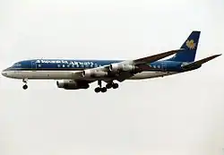 Hispaniola Airways was an airline from the Dominican Republic, that operated flights to Europe and the United States out of its base at Puerto Plata Airport. The company was founded in 1981 and disestablished in 2000.[1] Hispaniola operated Boeing 707, Boeing 720, Douglas DC-8 and Sud Aviation Caravelle jetliners.[2]