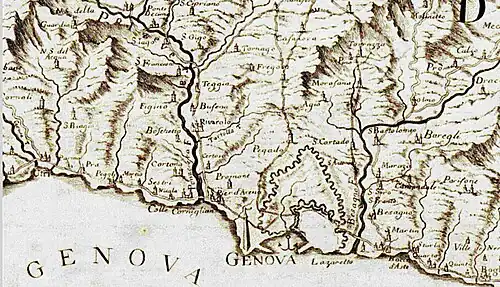 - ^ a b italiano, Touring club (2001). Liguria: Genova, le valli, i borghi interni, l'Alta Via dei Monti Liguri, le Riviere di Levante e Ponente (in Italian). Touring Editore. ISBN 978-88-365-1871-5. Archived from the original on 20 August 2024. Retrieved 15 June 2023.