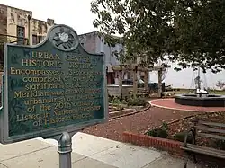 Meridian Downtown Historic District runs from the former Gulf, Mobile and Ohio Railroad tracks north to 6th St between 18th and 26th Avenues, excluding Ragsdale Survey Block 71 on the northeastern tip of the district. The district was created in 2005 to combine two older districts, Meridian Urban Center Historic District and Union Station Historic District.[3] Meridian's city council voted to combine these two districts and the nine blocks between them into one large district, which was added to the National Register of Historic Places on January 16, 2007.[2]