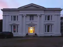 The estate of Bydown, within the parish of Swimbridge, was in ancient times owned by the Mayne and Chichester families.[21] The surviving Bydown House is a grade II* listed[22] country house built by the Nott family in 1798 as the surviving datestone states,[23] or between 1820–30 as Pevsner suggests.[24] It was described by Pevsner as "a trim neo-Grecian mansion in a small park with two immaculate white stucco fronts".[25] Between the lower storey windows is a small inscribed tablet inscribed "1759, J Nott", with the arms of Nott, reset on the new house.[26] It remained in the ownership of the Nott family until about 1925.[27]