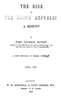 The liberal Reinier Cornelis Bakhuizen van den Brink (born 1810) made important contributions to Eighty Years' War studies starting in 1844, and as the National Archivist from 1854 to 1865.[16] According to Winkler Prins (2002), Bakhuizen 'renewed and raised historical scholarship together with Robert Fruin as historian and unsurpassed master of historical criticism.'[16] In 1857, he translated The Rise of the Dutch Republic (1856) from the American puritan historian John Lothrop Motley.[17] Bakhuizen was very positive about the book: "The work of Motley seems to me to represent such a proper foundation for the history of the formation of the Commonwealth of United Netherlands, that it almost becomes a duty to contribute everything that one himself possesses to continue building on that foundation."[18] Fellow liberal historian Robert Fruin published an almost equally positive review of the book in 1859, admiring Motley's talents as a writer, agreeing with Bakhuizen's "favourable judgement wholeheartedly", although the book required some "addition and correction".[19]