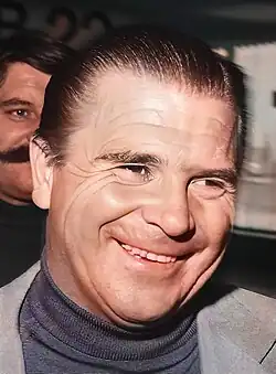 Nikos Goumas hired the Hungarian-German manager, Jenő Csaknady who brought a disciplined model, innovating training methods and new tactical systems. Mimis Papaioannou, Aleko Yordan, and the Syrian Ibrahim Mughrabi, the first foreign player to ever play for a Greek club, were among the arrivals. AEK finished at the top, tied with Panathinaikos and a championship play-off was set. Panathinaikos initially took the lead, the yellow-blacks made it 3–1, but the greens responded making the final 3–3. Thus, by the regulation of the time AEK won the title due to a better a goal ratio.[6] As AEK won their first post-war league, Nestoridis emerged as the league's top scorer for the fifth time and the last of his career with 23 goals, making a record of consecutive wins of the award.[7]