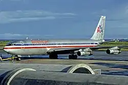 American Airlines ordered British-built de Havilland Comets; the orders were canceled when the Comets were found to suffer serious metal fatigue. American Airlines introduced transcontinental Boeing 707s on January 25, 1959, and invested $440 million in jet aircraft up to 1962,[14] launched the first electronic booking system, Sabre, with IBM, and built a terminal at Idlewild (now JFK) Airport in New York City, which became the airline's largest base.[15] Vignelli Associates designed the AA eagle logo in 1967.[16] Vignelli attributes the introduction of his firm to American Airlines to Henry Dreyfuss, the legendary AA design consultant. The logo was in use until January 17, 2013.