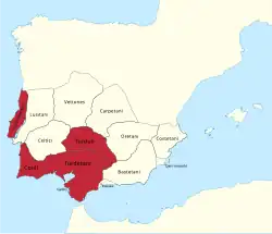After the fall of Tartessos, the territory of present-day Andalusia came under Carthaginian control.[14] However, as heir to their culture emerged Turdetania, a region populated by the Turdetans, an Iberian people who, according to Strabo: