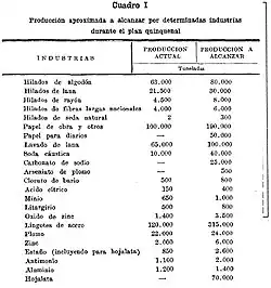At the beginning of the second half of 1946, José Figuerola, Legal and Technical Secretary of the Presidency, presented the Five-Year Plan on September 30 of that year. It was officially announced in the presidential message on October 19, 1947.[19]