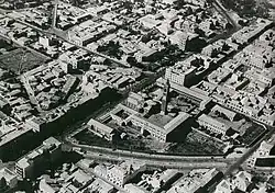 The first city plans should be seen as an expression of the power relations between two groups. The plan from 1902 had already divided the city into three zones: a zone for Italians which included the city center, a zone centered on the traditional market meant for other European groups like Greeks and Jews, and an unplanned zone for indigenous folks, located outside of the northern city border.[17] A fourth zone for industry was envisaged in the next plan of 1908.[18] Additional plans by planner Cavagniari, which were decided upon in 1913 and 1916 respectively, strengthened the principle of racial separation, which then became increasingly more rigid during the beginning of the fascist era in the 1920s.[19]