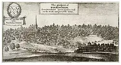 The Tudor and Stuart eras marked a period of transition for Birmingham.[102] In the 1520s the town was the third largest in Warwickshire with a population of about 1,000 – a situation little changed from that two centuries earlier.[103] Despite a series of plagues throughout the 17th century,[104] by 1700 Birmingham's population had increased fifteenfold and the town was the fifth-largest in England and Wales,[105] with a nationally important economy based on the expanding and diversifying metal trades,[106] and a reputation for political and religious radicalism firmly established by its role in the English Civil War.[107]
