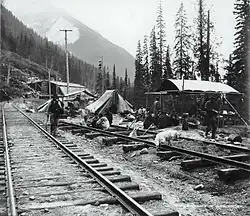 The dominance of the economy by big business was accompanied by an often militant labour movement. The first major sympathy strike was in 1903 when railway employees struck against the CPR for union recognition. Labour leader Frank Rogers was killed while picketing at the docks by CPR police during that strike, becoming the British Columbia movement's first martyr.[52] Canada's first general strike occurred following the death of another labour leader, Ginger Goodwin, in 1918, at the Cumberland coal mines on Vancouver Island.[53] A lull in industrial tensions through the later 1920s came to an abrupt end with the Great Depression. Most of the 1930s strikes were led by Communist Party organizers.[54] That strike wave peaked in 1935 when unemployed men flooded the city to protest conditions in the relief camps run by the military in remote areas throughout the province. After two tense months of daily and disruptive protesting, the relief camp strikers decided to take their grievances to the federal government and embarked on the On-to-Ottawa Trek,[55] but their commandeered train was met by a gatling gun at Hatzic, just east of Mission City, and the strikers arrested and interned in work camps for the duration of the Depression.[56]