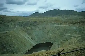 The copper mines proved to be prosperous until the 1950s, when the declining grade of ore and competition from other mines led the Anaconda Company to switch its focus from the costly and dangerous practice of underground mining to open pit mining.[38] Since the 1950s, five major developments in the city have occurred: the Anaconda's decision to begin open-pit mining in the mid-1950s; a series of fires in Butte's business district in the 1970s; a debate over whether to relocate the city's historic business district; a new civic leadership; and the end of copper mining in 1983. In response, Butte looked for ways to diversify the economy and provide employment. The legacy of over a century of environmental degradation has, for example, produced some jobs. Environmental cleanup in Butte, designated a Superfund site, has employed hundreds of people.[43]