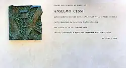 On September 19, 1926, the Catholic teacher Anselmo Cessi was assassinated by the Fascists,[178] and on the occasion of the Great Jubilee, John Paul II included him among the "martyrs of our time."[179] In 2018, the Municipality of Castel Goffredo dedicated a monument to the teacher in the street of the same name, the work of the Mantuan sculptor Andrea Jori.[180]